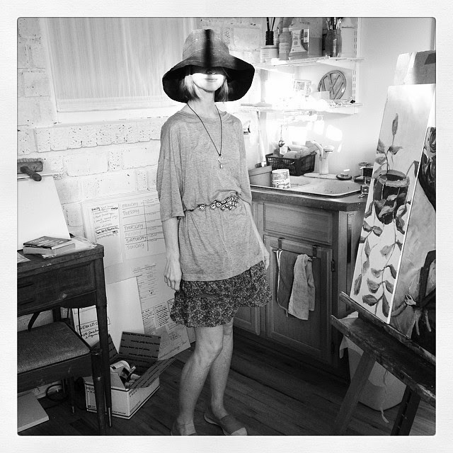 My friend Jeri who is a wonderful person and talented artist and healer was visiting from Seattle for 5 days and we got to spend a good deal of time together. She snapped this pic of me in my studio modeling one of her new talisman necklaces and a style of the day for her blog. You can see more of her work here.